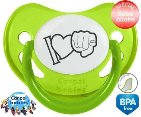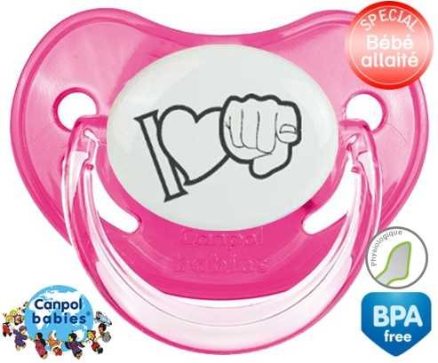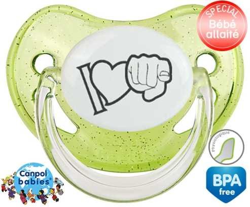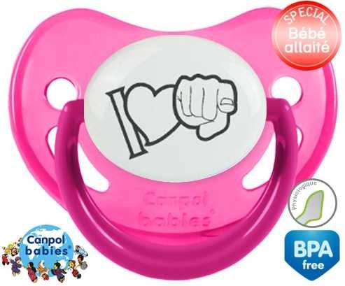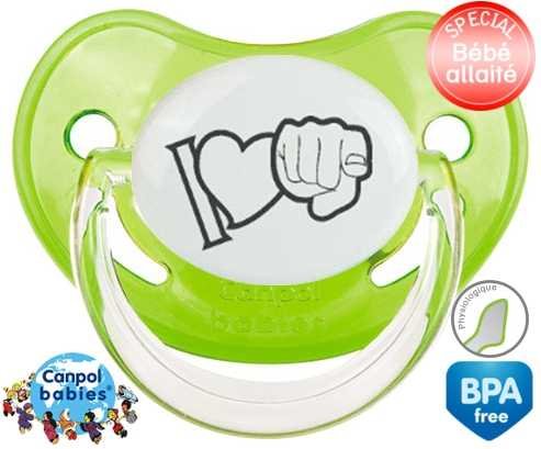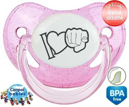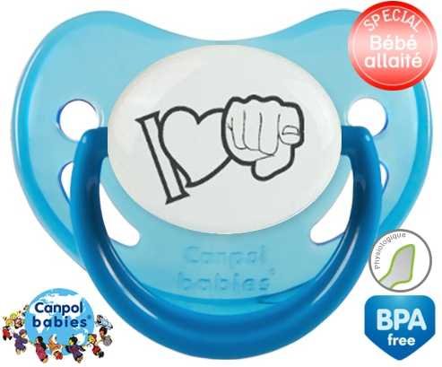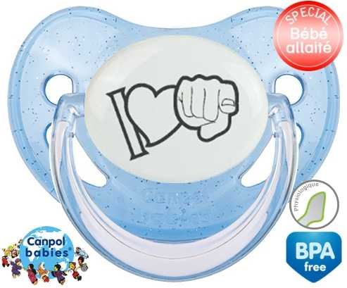 Offrez à votre bébé le confort d’une tétine personnalisée physiologique douce et adaptée. L'embout asymétrique épouse naturellement le palais, idéal pour les petits bouts allaités. Le design "I love toi" en gris apporte une touche tendre et discrète, parfaite pour un cadeau unique. Chaque tétine est imprimée avec soin pour une personnalisation raffinée qui accompagne les premiers moments de douceur.