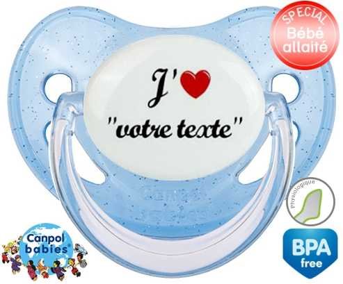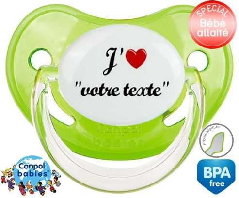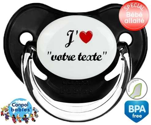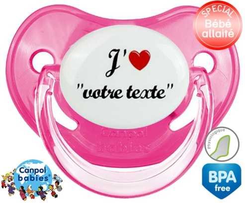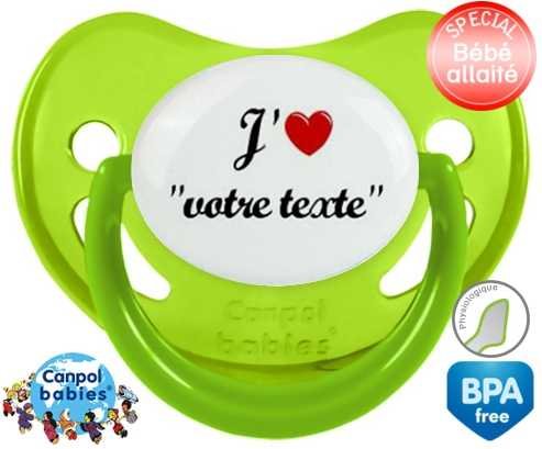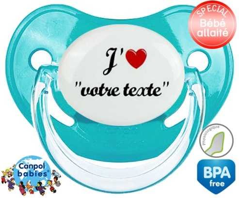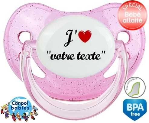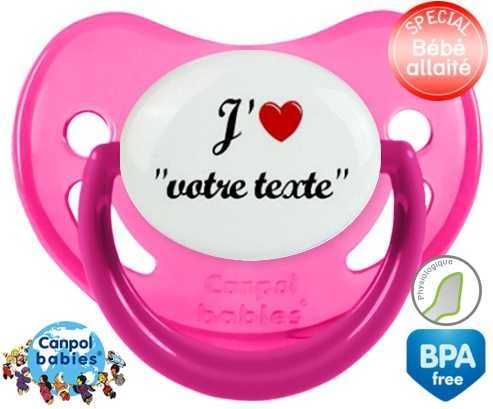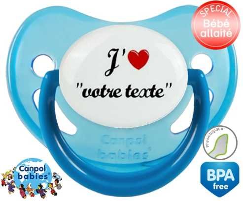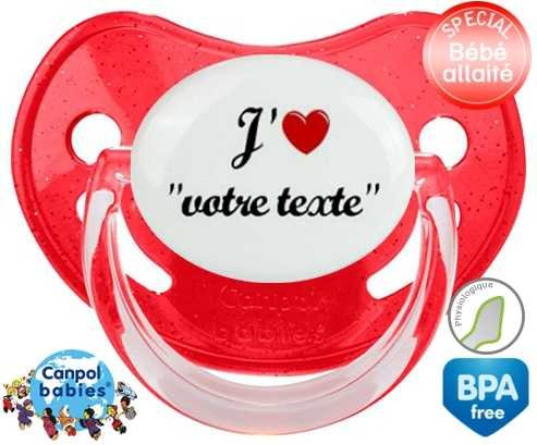 Tetine personnalisee avec le prénom pour bébé J'aime cœur + prénom : Embout Physiologique en silicone de la marque Canpol Babies avec impression en couleur.
