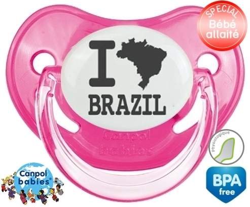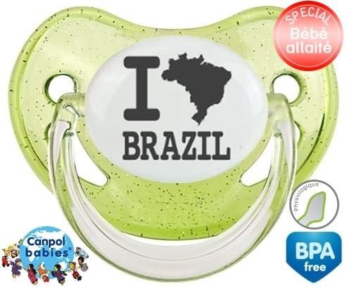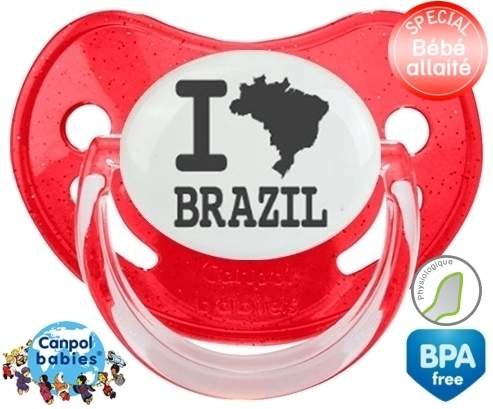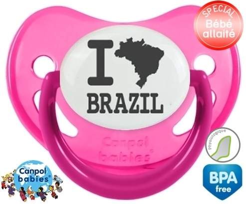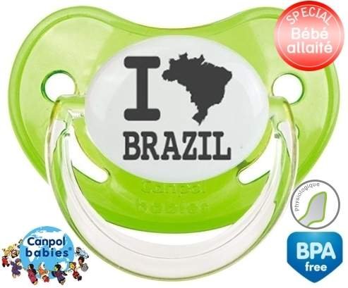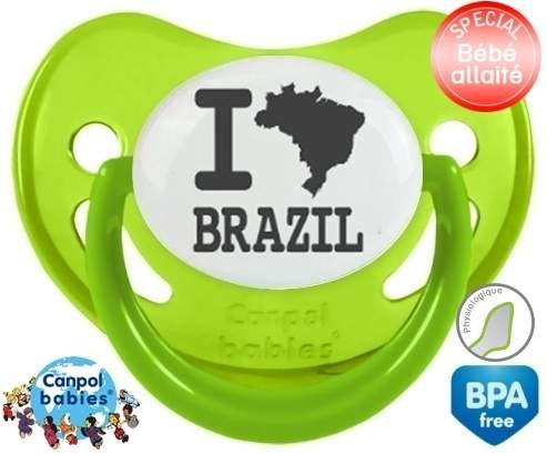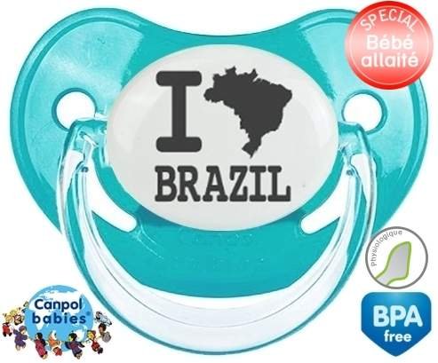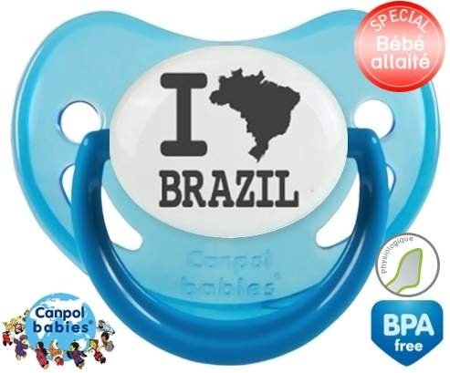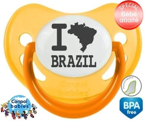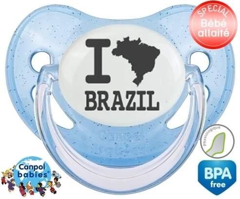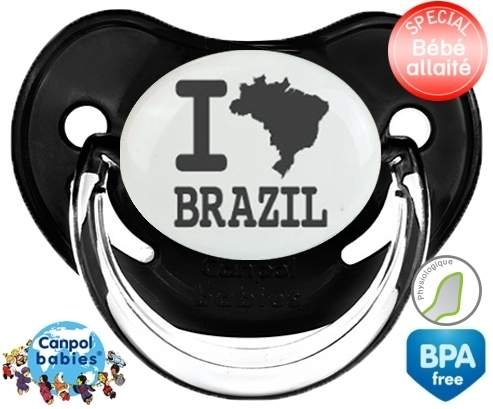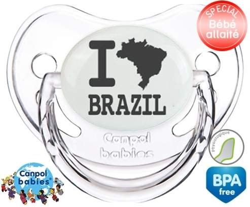 Tétine personnalisée pour bébé Originale i love brazil à embout Physiologique en silicone de la marque Canpol Babies avec impression en en Gris de la collection I love / I like.La silicone se reconnaît par sa couleur transparente. C'est une matière souple, douce, sans goût ni odeur et offre à bébé une succion plus facile grâce à sa souplesse.