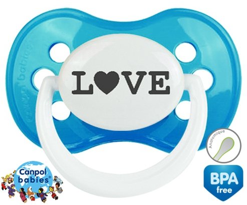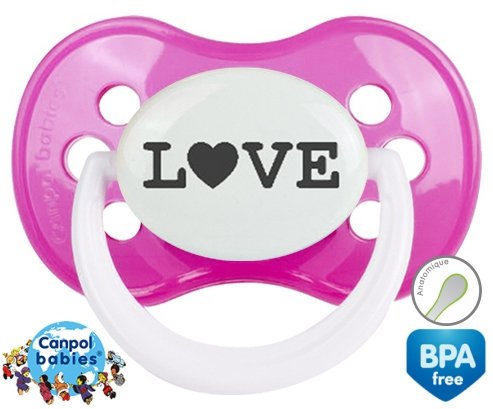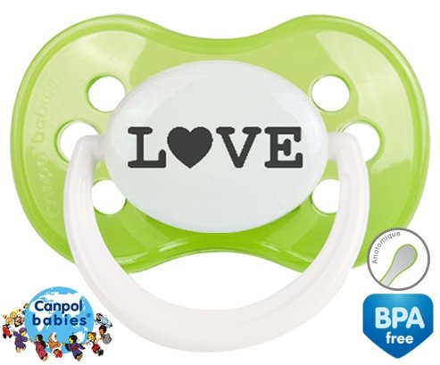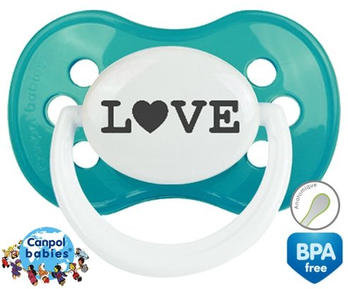 Tetine personnalisee pour bébé Originale love : Embout Anatomique en silicone de la marque Canpol Babies avec impression en gris.