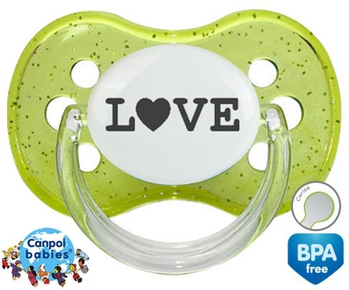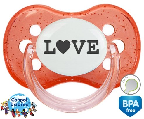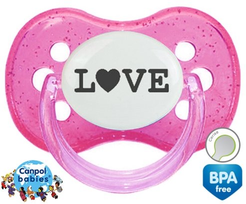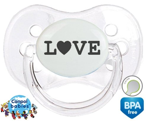 Sucette personnalisée pour bébé Originale love à embout Cerise en silicone de la marque Canpol Babies avec impression en en Gris de la collection I love / I like.La silicone se reconnaît par sa couleur transparente. C'est une matière souple, douce, sans goût ni odeur et offre à bébé une succion plus facile grâce à sa souplesse.