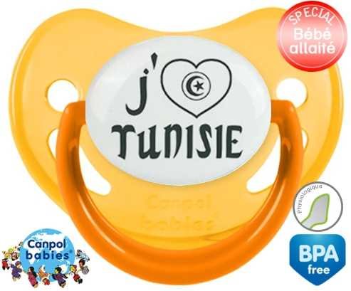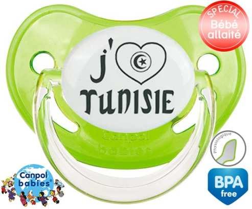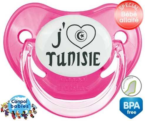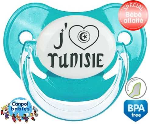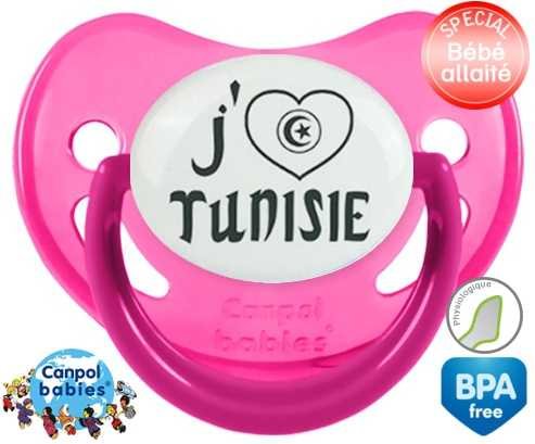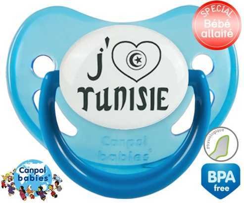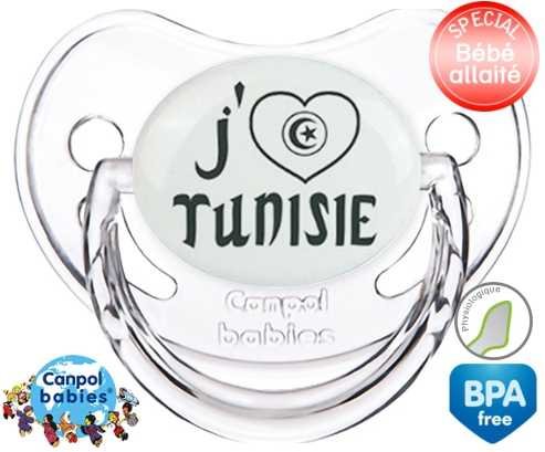 Tetine personnalisee pour bébé J'aime tunisie : Embout Physiologique en silicone de la marque Canpol Babies avec impression en gris.