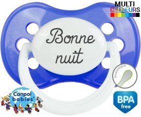Tétine personnalisée pour bébé Bonne nuit à embout Cerise en silicone de la marque Canpol Babies avec impression en en Gris de la collection Message.La silicone se reconnaît par sa couleur transparente. C'est une matière souple, douce, sans goût ni odeur et offre à bébé une succion plus facile grâce à sa souplesse.