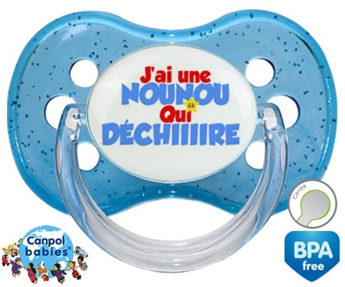 Sucette personnalisée pour bébé J'ai une nounou qui déchire à embout Cerise en silicone de la marque Canpol Babies avec impression en en Couleurs de la collection Message.La silicone se reconnaît par sa couleur transparente. C'est une matière souple, douce, sans goût ni odeur et offre à bébé une succion plus facile grâce à sa souplesse.