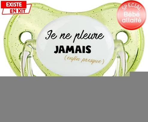 Offrez à votre bébé une tétine personnalisée au design doux et apaisant, idéale pour calmer les pleurs. Avec son embout physiologique légèrement courbé, cette sucette respecte la bouche du bébé, parfaite pour les nourrissons allaités. Sur le modèle "Je ne pleure jamais (enfin presque)", le visuel délicat apporte une touche de tendresse tout en étant unique. Personnalisez facilement la couleur et le message pour un cadeau vraiment spécial.