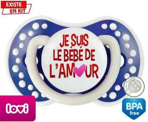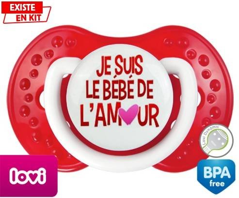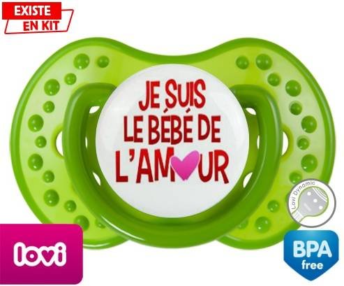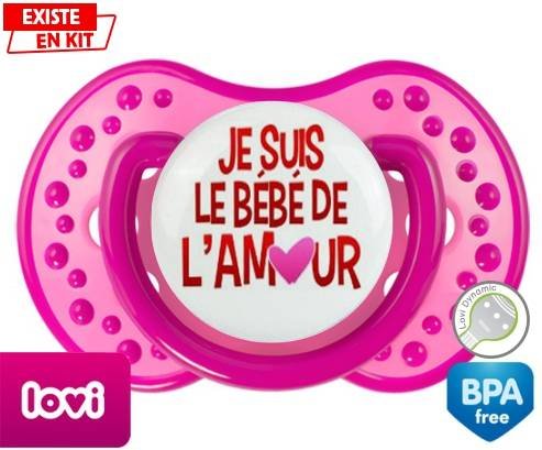 Sucette personnalisée pour bébé Je suis le bébé de l'amour à embout LOVI Dynamic en silicone de la marque Lovi Dynamic avec impression en en Couleurs de la collection Message.La silicone se reconnaît par sa couleur transparente. C'est une matière souple, douce, sans goût ni odeur et offre à bébé une succion plus facile grâce à sa souplesse.