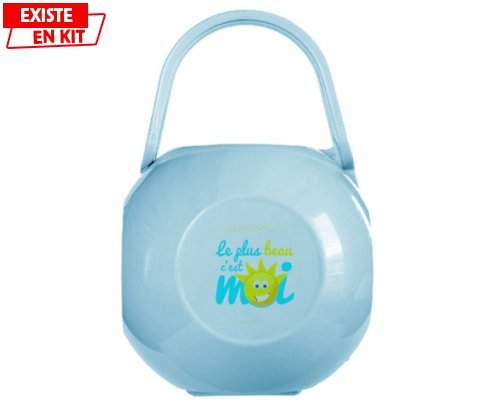 Protège la sucette de bébé avec style grâce à cette boîte à tétine personnalisée au design tendre et coloré. Pratique et hygiénique, elle se fixe facilement à la poussette ou au sac à langer grâce à son anse. Disponible en bleu, rose ou blanc, cette boîte sans BPA peut contenir jusqu’à deux sucettes. Un accessoire indispensable pour garder la sucette propre tout en affichant un message doux et joyeux.