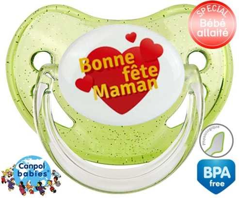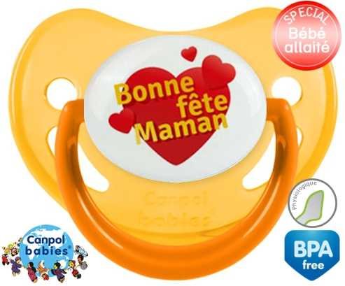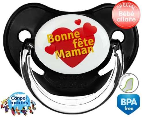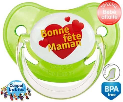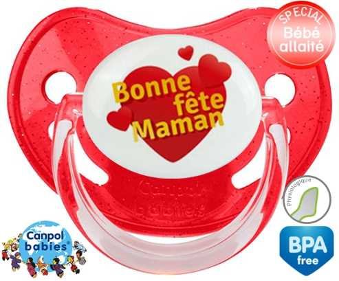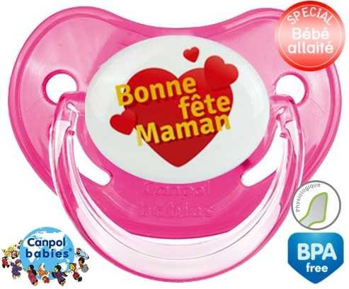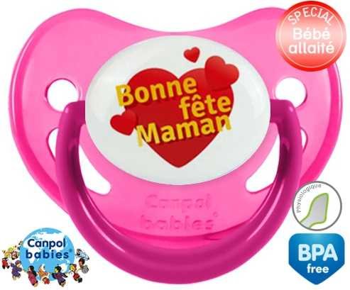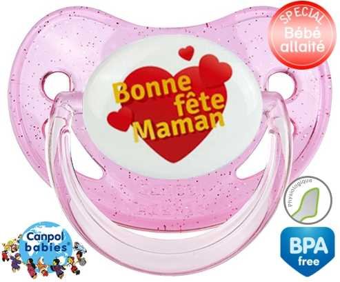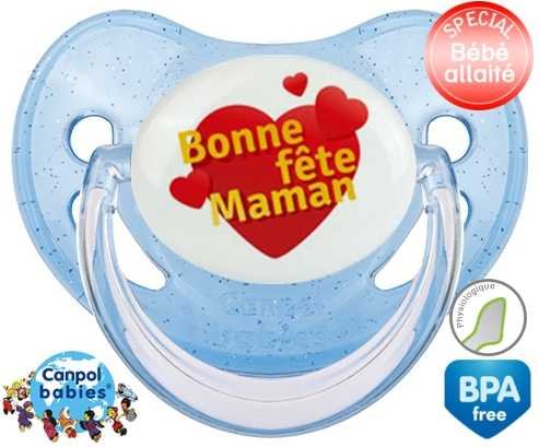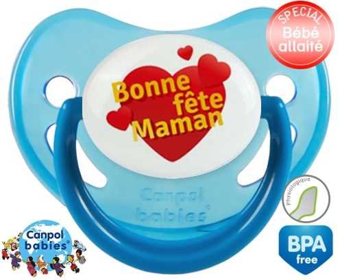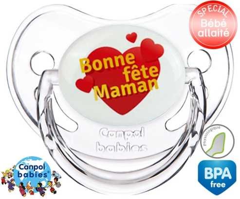 Tetine personnalisee pour bébé Bonne fête maman style2 à embout Physiologique en silicone de la marque Canpol Babies avec impression en en Couleurs de la collection Fête et Événement.La silicone se reconnaît par sa couleur transparente. C'est une matière souple, douce, sans goût ni odeur et offre à bébé une succion plus facile grâce à sa souplesse.