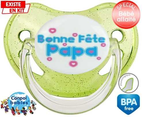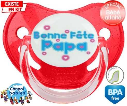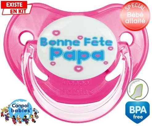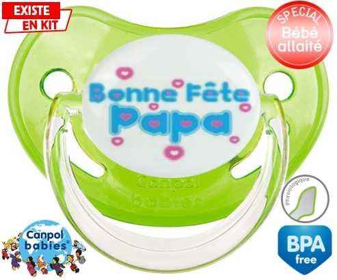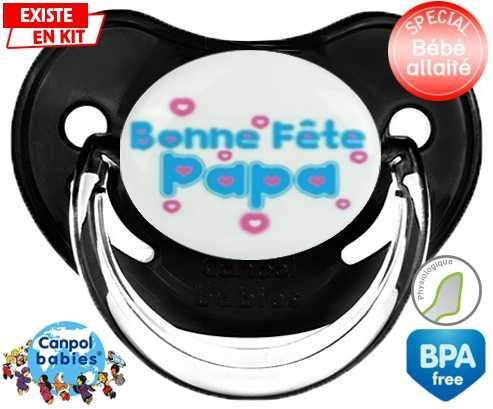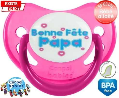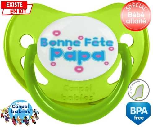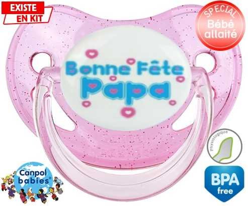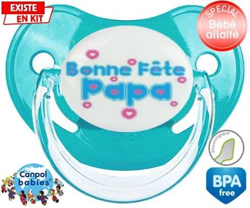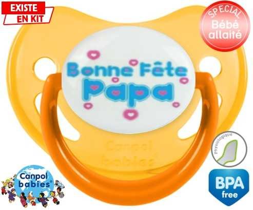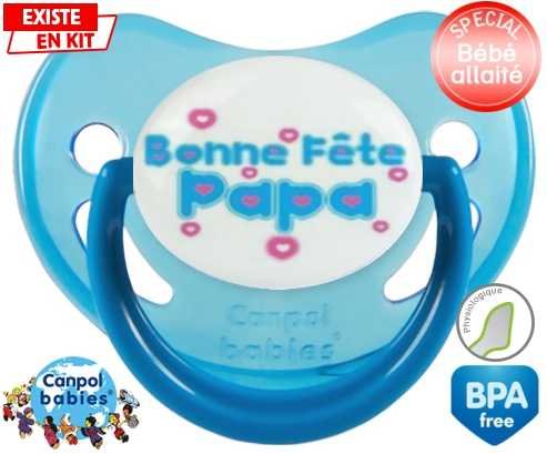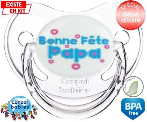 Tetine personnalisee pour bébé Bonne fête papa style1 à embout Physiologique en silicone de la marque Canpol Babies avec impression en en Couleurs de la collection Fête et Événement.La silicone se reconnaît par sa couleur transparente. C'est une matière souple, douce, sans goût ni odeur et offre à bébé une succion plus facile grâce à sa souplesse.