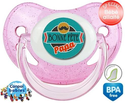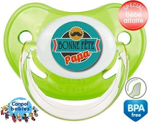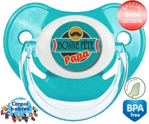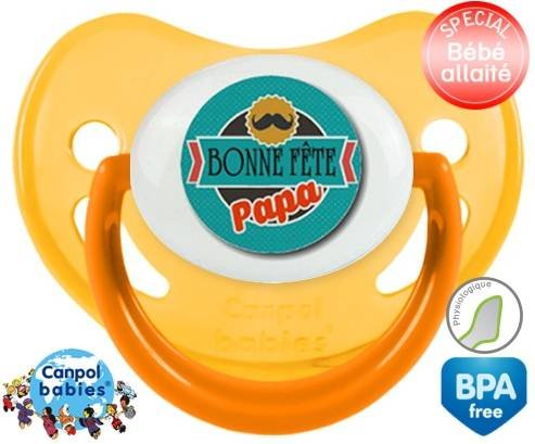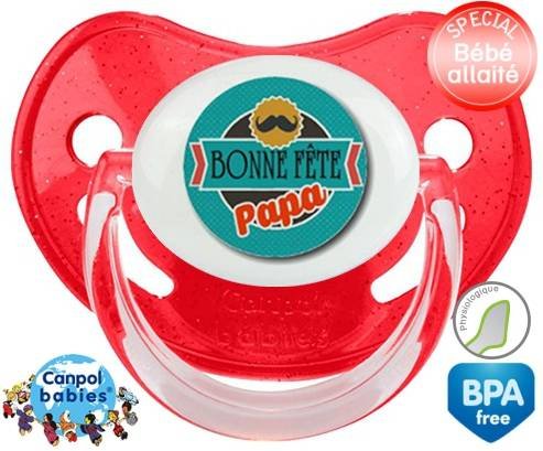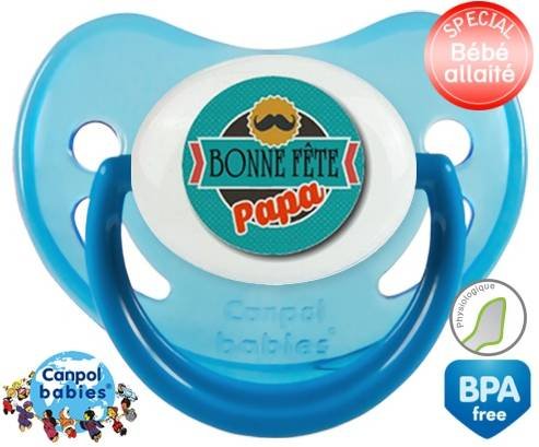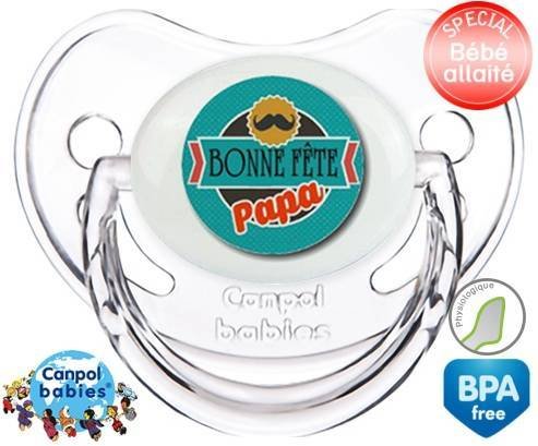 Tetine personnalisee pour bébé Bonne fête papa style13 à embout Physiologique en silicone de la marque Canpol Babies avec impression en en Couleurs de la collection Fête et Événement.La silicone se reconnaît par sa couleur transparente. C'est une matière souple, douce, sans goût ni odeur et offre à bébé une succion plus facile grâce à sa souplesse.
