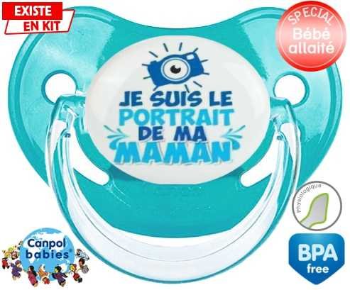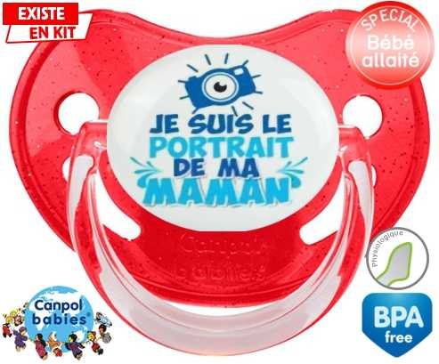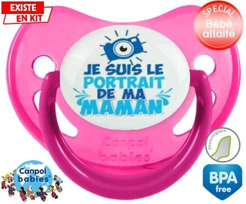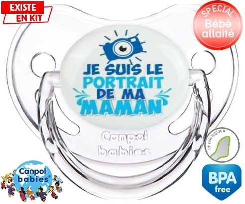Sucette personnalisée pour bébé Je suis le portrait de ma maman style2 à embout Physiologique en silicone de la marque Canpol Babies avec impression en en Couleurs de la collection Papa / Maman.La silicone se reconnaît par sa couleur transparente. C'est une matière souple, douce, sans goût ni odeur et offre à bébé une succion plus facile grâce à sa souplesse.