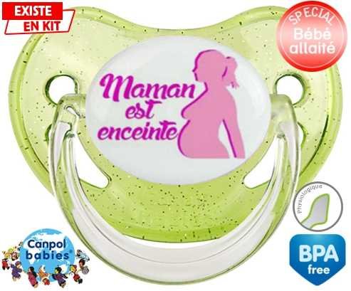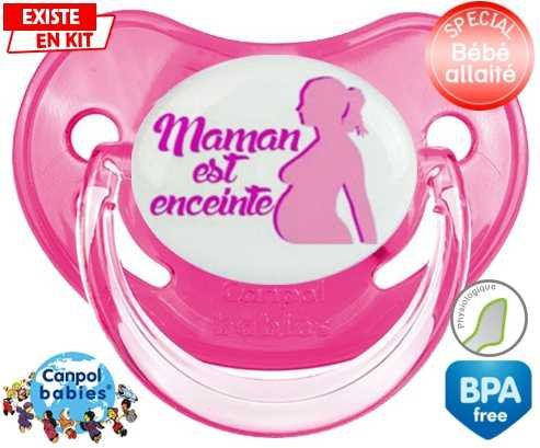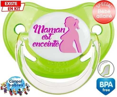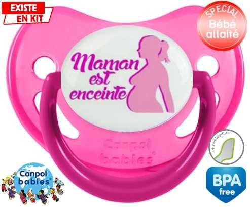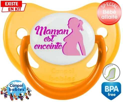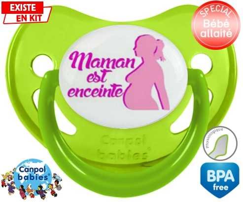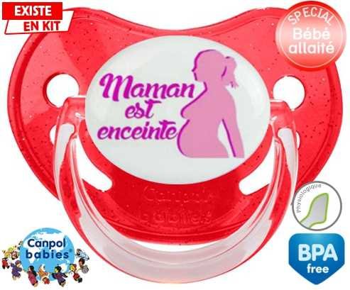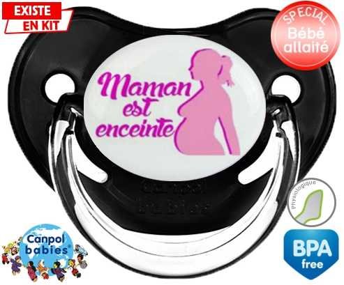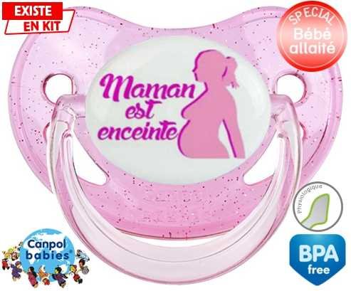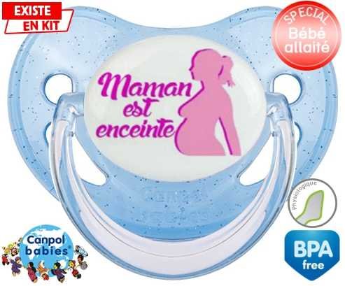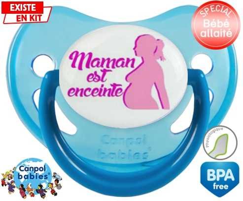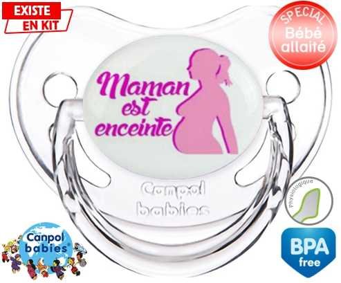 Tetine personnalisee pour bébé Maman est enceinte fille à embout Physiologique en silicone de la marque Canpol Babies avec impression en en Couleurs de la collection Papa / Maman.La silicone se reconnaît par sa couleur transparente. C'est une matière souple, douce, sans goût ni odeur et offre à bébé une succion plus facile grâce à sa souplesse.