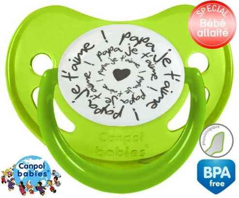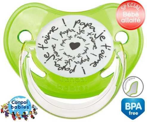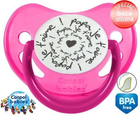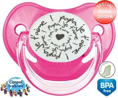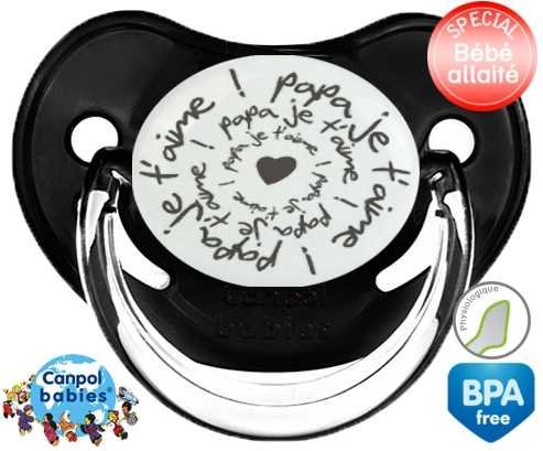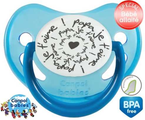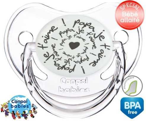Sucette personnalisée pour bébé Papa je t'aime à embout Physiologique en silicone de la marque Canpol Babies avec impression en en Gris de la collection j'aime / j'adore.La silicone se reconnaît par sa couleur transparente. C'est une matière souple, douce, sans goût ni odeur et offre à bébé une succion plus facile grâce à sa souplesse.