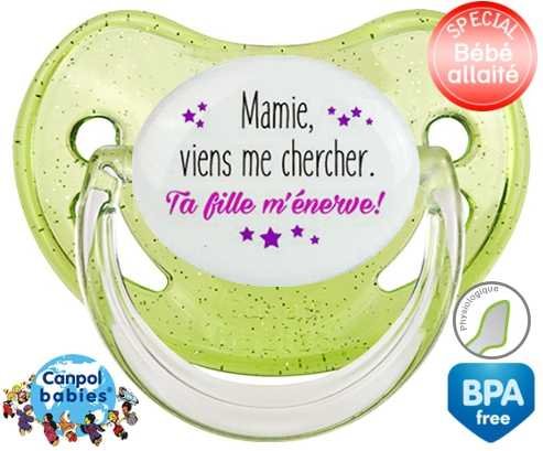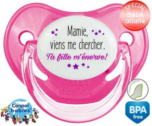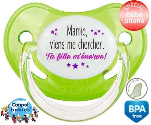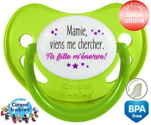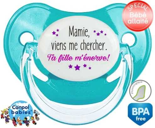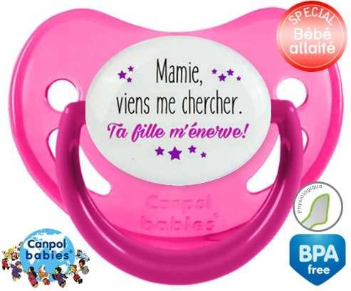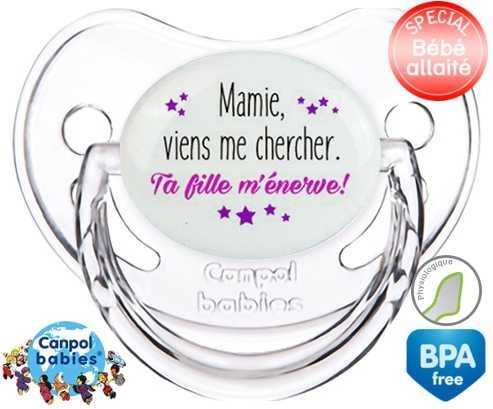 Tetine personnalisee pour bébé Mamie viens me chercher... à embout Physiologique en silicone de la marque Canpol Babies avec impression en en Couleurs de la collection Papi / Mamie.La silicone se reconnaît par sa couleur transparente. C'est une matière souple, douce, sans goût ni odeur et offre à bébé une succion plus facile grâce à sa souplesse.