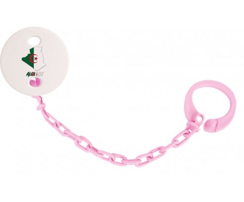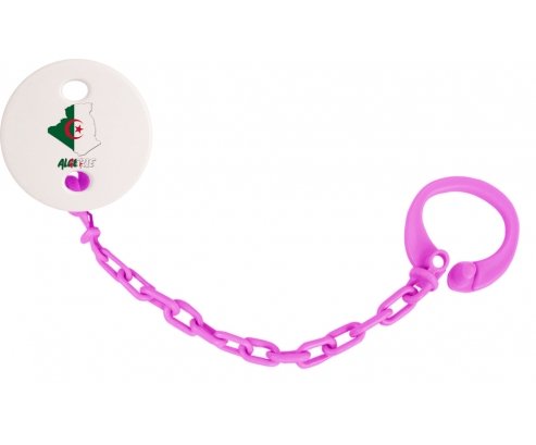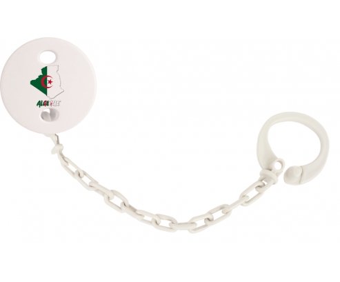 Attache-tetine personnalisé Algerie maps avec personnalisation design en couleur. Disponible en plusieurs coloris et plastique facile à laver. Pratique : permet une fixation facile de la sucette de bébé à son doudou et à ses vêtements en un seul clip. Hygiénique : empêche la sucette de tomber par terre et permet ainsi à bébé d'avoir une sucette propre toute la journée Visible : facile à repérer grâce aux motifs colorés.