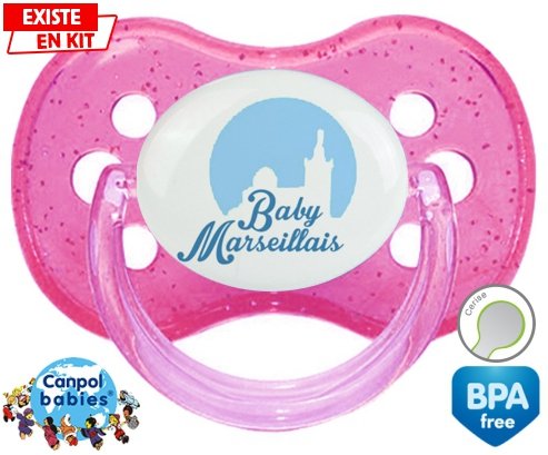 Sucette personnalisée pour bébé Baby marseillais à embout Cerise en silicone de la marque Canpol Babies avec impression en en Couleurs de la collection Pays / Région.La silicone se reconnaît par sa couleur transparente. C'est une matière souple, douce, sans goût ni odeur et offre à bébé une succion plus facile grâce à sa souplesse.