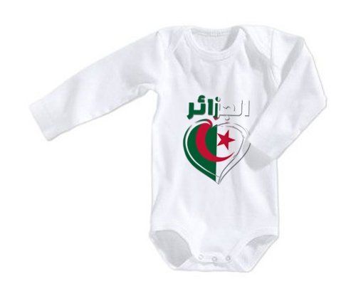 Body personnalisé Algérie en arabe + cœur avec impression en couleur de fabrication européenne et composés à 100 % du coton le plus doux, il est également conçu pour être aussi pratique que joli.