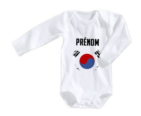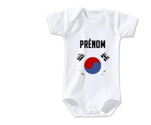 Body personnalisé Drapeau effet pinceau Corée du Sud avec prénom avec impression en couleur de fabrication européenne et composés à 100 % du coton le plus doux, il est également conçu pour être aussi pratique que joli.