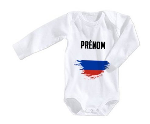 Body personnalisé Drapeau effet pinceau Russie avec prénom avec impression en couleur de fabrication européenne et composés à 100 % du coton le plus doux, il est également conçu pour être aussi pratique que joli.