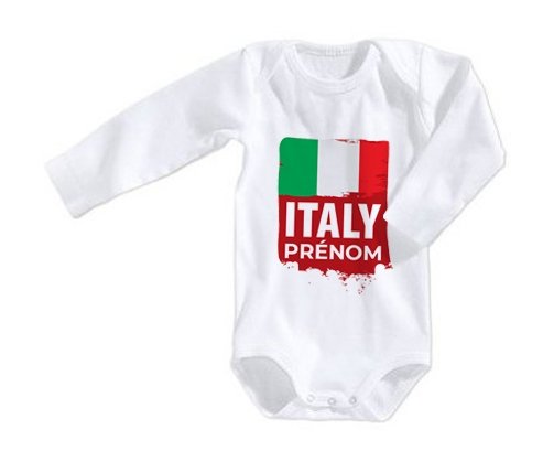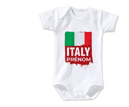 Body personnalisé Drapeau Italie avec prénom avec impression en couleur de fabrication européenne et composés à 100 % du coton le plus doux, il est également conçu pour être aussi pratique que joli.