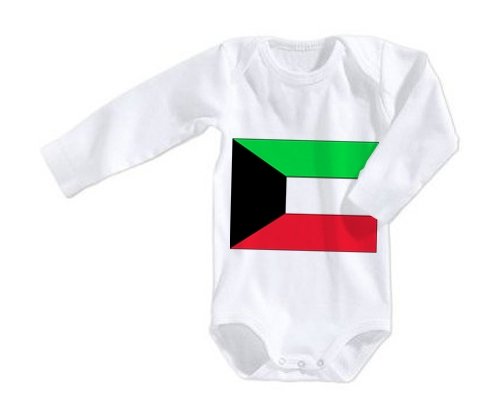 Offrez à votre bébé un body personnalisé alliant douceur et praticité. Confectionné en 100% coton européen, ce body blanc à manches courtes ou longues affiche le drapeau du Koweït en couleurs éclatantes, imprimé sans risque pour la peau sensible de bébé. Grâce à son encolure américaine et ses boutons pression, il facilite chaque change tout en apportant une touche unique à la tenue de votre tout-petit.