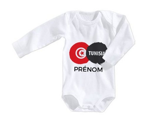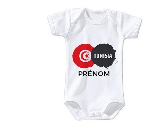 Body personnalisé Drapeau Tunisia avec prénom avec impression en couleur de fabrication européenne et composés à 100 % du coton le plus doux, il est également conçu pour être aussi pratique que joli.