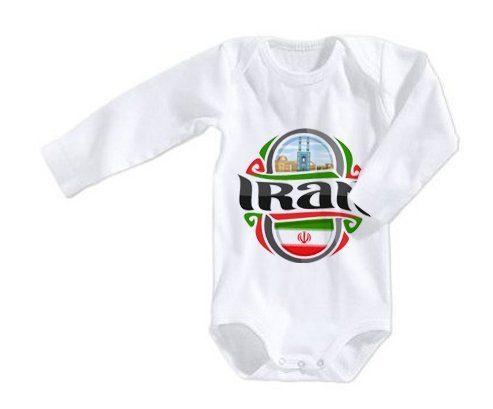 Body personnalisé Flag Iran avec impression en couleur, en coton à encolure américaine croisée et manches courtes ou longues. Ils se ferment par boutons pression dans l’entrejambe pour faciliter le change. Les bodies constituent l’essentiel du premier dressing de bébé, surtout personnalisés. Faites le plein de confort et de douceur pour votre bébé en craquant pour ce magnifique body à manches longues ou courtes !, 100% coton.