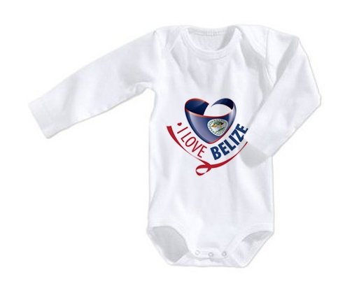 Offrez à votre bébé un confort optimal avec ce body bébé personnalisé en 100% coton doux, idéal pour les peaux sensibles. Sa fabrication européenne garantit qualité et douceur. Le design coloré « I Love Belize » apporte une touche délicate et originale. Pratique, l'encolure américaine et les boutons pression facilitent le change.