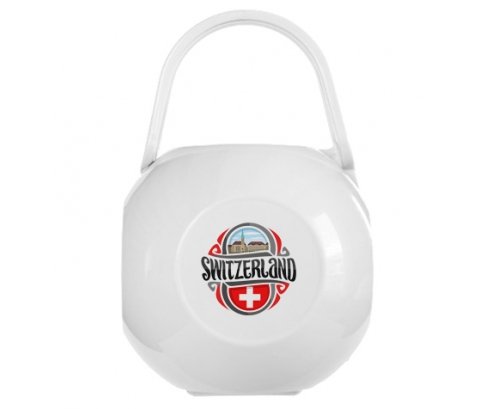Boite à tetine avec design : Flag Switzerland , impression de qualité et en couleur. Pratique : elle transporte la sucette en tout lieu. Grâce à sa poignée souple, elle est facile à accrocher à la poussette, sac à langer ... Cette boîte de rangement flexible, est la solution hygiénique pour protéger les sucettes de son enfant quand il ne les utilise pas. Peut contenir jusqu'à deux tetines.