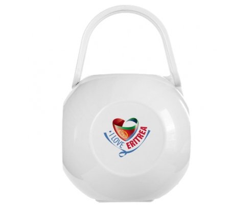 Boite à sucette avec design : I Love Eritrea , impression de qualité et en couleur. Pratique : elle transporte la sucette en tout lieu. Grâce à sa poignée souple, elle est facile à accrocher à la poussette, sac à langer ... Cette boîte de rangement flexible, est la solution hygiénique pour protéger les sucettes de son enfant quand il ne les utilise pas. Peut contenir jusqu'à deux sucettes.