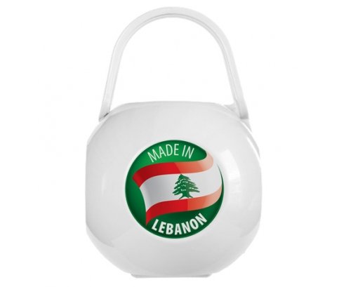 Boite à tetine avec design : Made in LEBANON , impression de qualité et en couleur. Pratique : elle transporte la sucette en tout lieu. Grâce à sa poignée souple, elle est facile à accrocher à la poussette, sac à langer ... Cette boîte de rangement flexible, est la solution hygiénique pour protéger les sucettes de son enfant quand il ne les utilise pas. Peut contenir jusqu'à deux tetines.