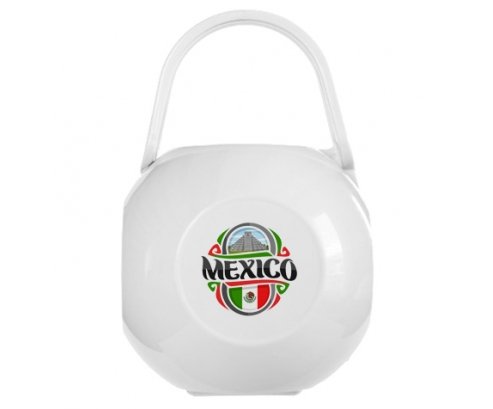 Boîte à sucette avec design : Flag Mexico , impression de qualité et en couleur. Pratique : elle transporte la sucette en tout lieu. Grâce à sa poignée souple, elle est facile à accrocher à la poussette, sac à langer ... Cette boîte de rangement flexible, est la solution hygiénique pour protéger les sucettes de son enfant quand il ne les utilise pas. Peut contenir jusqu'à deux sucettes.