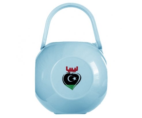 Boîte à tetine avec design : Libye en arabe + cœur , impression de qualité et en couleur. Pratique : elle transporte la sucette en tout lieu. Grâce à sa poignée souple, elle est facile à accrocher à la poussette, sac à langer ... Cette boîte de rangement flexible, est la solution hygiénique pour protéger les sucettes de son enfant quand il ne les utilise pas. Peut contenir jusqu'à deux tetines.