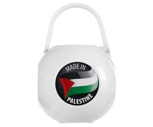 Boîte à tétine avec design : Made in PALESTINE , impression de qualité et en couleur. Pratique : elle transporte la sucette en tout lieu. Grâce à sa poignée souple, elle est facile à accrocher à la poussette, sac à langer ... Cette boîte de rangement flexible, est la solution hygiénique pour protéger les sucettes de son enfant quand il ne les utilise pas. Peut contenir jusqu'à deux tétines.