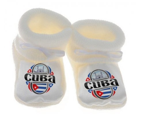 Su7.fr vous propose le chausson bébé personnalisé pour nouveau né avec le design : Flag Cuba . Ce chausson avec une impression en couleur compléte toute la gamme ( sucette, attache-sucette, bavoir, chausson, body , Boîte à sucette, et bonnet).