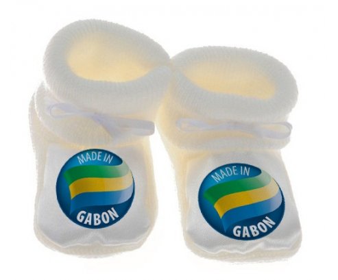 Su7.fr vous propose le chausson bébé personnalisé pour nouveau né avec le design : Made in GABON . Ce chausson avec une impression en couleur compléte toute la gamme ( sucette, attache-sucette, bavoir, chausson, body , Boîte à sucette, et bonnet).