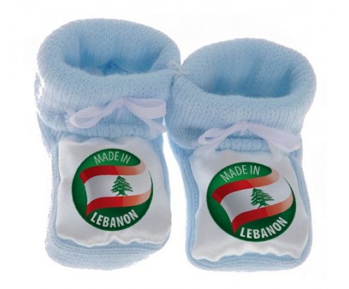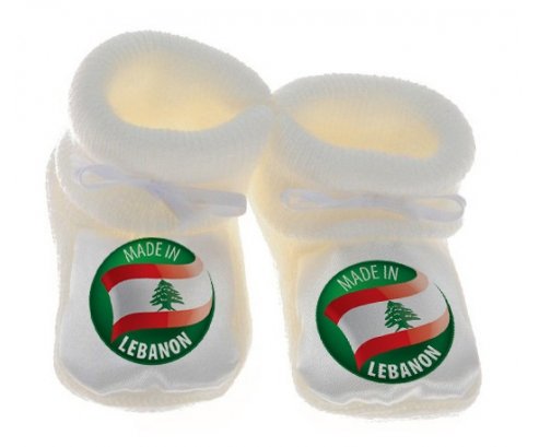 Su7.fr vous propose le chausson bébé personnalisé pour nouveau né avec le design : Made in LEBANON . Ce chausson avec une impression en couleur compléte toute la gamme ( sucette, attache-sucette, bavoir, chausson, body , Boîte à sucette, et bonnet).