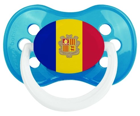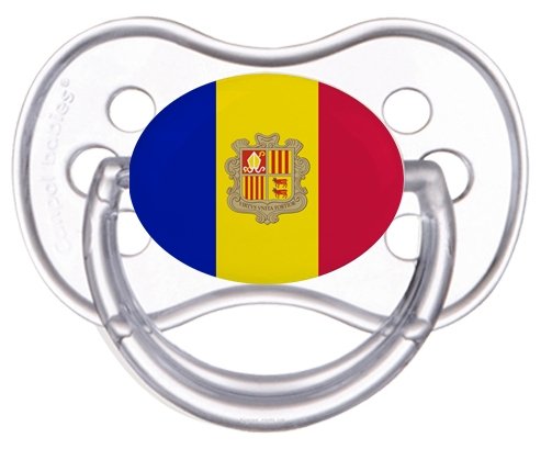 Sucette personnalisée pour bébé Drapeau Andorre à embout Anatomique en silicone de la marque Canpol Babies avec impression en en Couleurs de la Collection Pays / Équipes .La silicone se reconnaît par sa couleur transparente. C'est une matière souple, douce, sans goût ni odeur et offre à bébé une succion plus facile grâce à sa souplesse.
