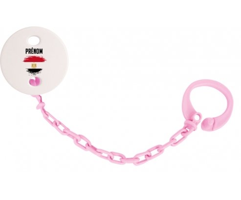 Attache-tetine personnalisé Drapeau effet pinceau Egypte avec prénom avec personnalisation design en couleur. Disponible en plusieurs coloris et plastique facile à laver. Pratique : permet une fixation facile de la sucette de bébé à son doudou et à ses vêtements en un seul clip. Hygiénique : empêche la sucette de tomber par terre et permet ainsi à bébé d'avoir une sucette propre toute la journée Visible : facile à repérer grâce aux motifs colorés.