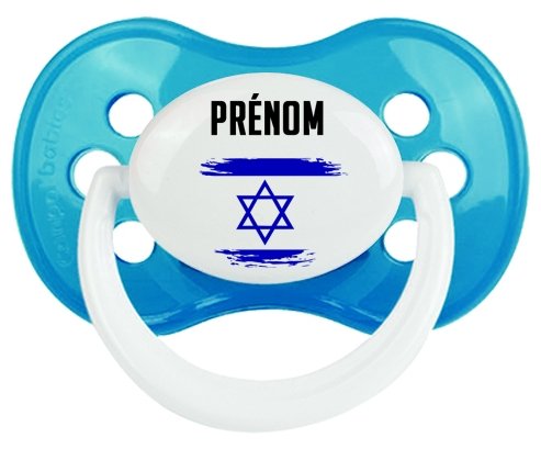 Offrez à votre bébé une tétine personnalisée unique, alliant douceur et praticité. L'embout anatomique plat et symétrique s'adapte facilement à la bouche de votre enfant, pour un confort optimal. Le design aux couleurs du drapeau d’Israël, réalisé en effet pinceau, apporte une touche délicate et élégante. Personnalisable avec le prénom, cette sucette est idéale pour un cadeau spécial ou un kit de naissance.