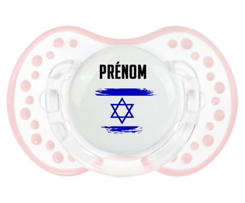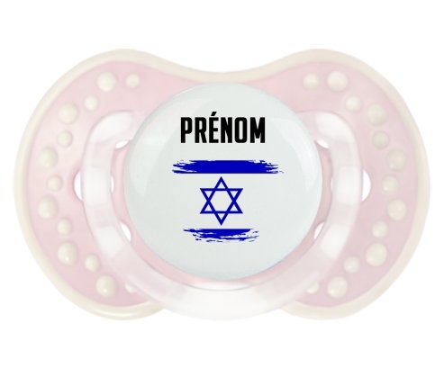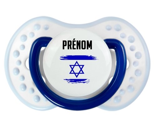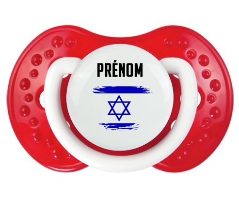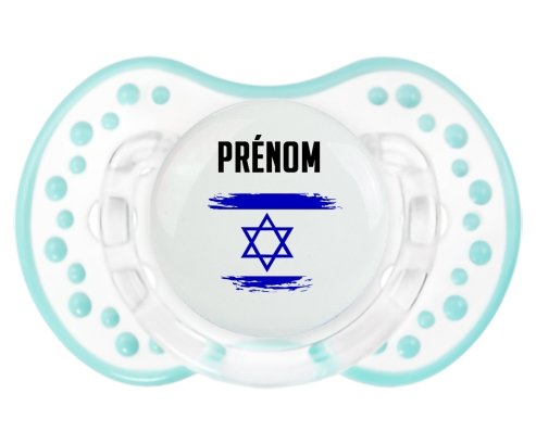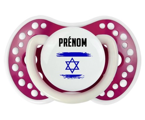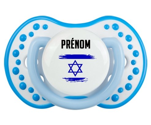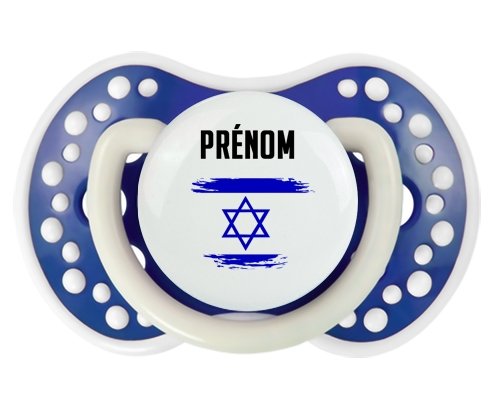 Offrez à votre bébé une tétine personnalisée LOVI Dynamic alliant confort et style. Sa forme en boule avec picots imite le mamelon maternel pour un bien-être naturel. Le design délicat du drapeau Israël effet pinceau, imprimé en couleur vive, ajoute une touche unique et douce, personnalisable avec le prénom de votre enfant. Un choix idéal pour une succion apaisante et personnalisée.