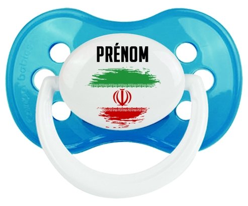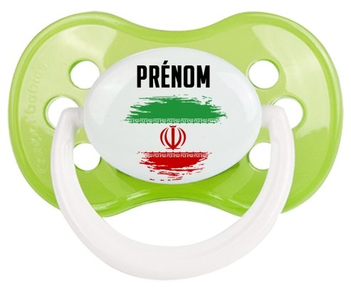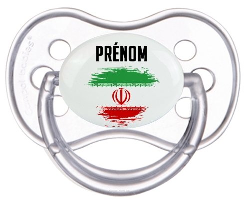 Offrez à votre bébé une tétine personnalisée unique alliant douceur et originalité. La sucette à embout anatomique assure un confort optimal grâce à sa forme symétrique, idéale pour accompagner la tétée de votre enfant. Le design coloré reprend subtilement le drapeau de l’Iran avec un effet pinceau délicat, sur lequel le prénom de bébé est inscrit pour un cadeau tendre et personnalisé.