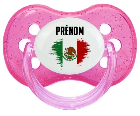 Offrez à votre bébé une tétine personnalisée unique avec ce design original représentant le drapeau du Mexique en effet pinceau. L'embout cerise, tout en douceur, épouse parfaitement la bouche de bébé pour un confort optimal. Personnalisable avec le prénom, cette sucette en silicone allie style et praticité, idéale pour un cadeau de naissance plein de tendresse.