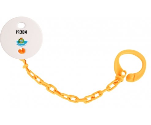 Offrez à votre bébé une attache tétine unique et pratique, ornée du drapeau Saint Marin au rendu délicat effet pinceau. Facile à fixer grâce à sa pince en plastique, elle évite la perte de tétine en s’attachant aux vêtements ou accessoires. Cette création personnalisable avec le prénom de votre enfant ajoute une touche toute douce et originale à son quotidien.
