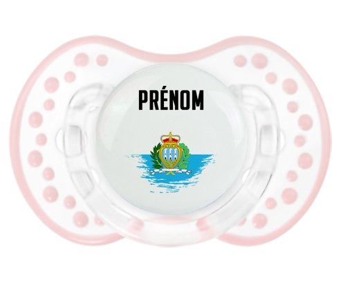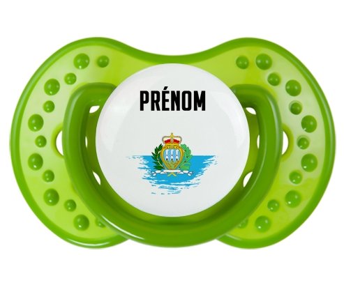 Sucette personnalisée Avec Prénom pour bébé Drapeau effet pinceau Saint Marin avec prénom en silicone de la marque Lovi Dynamic avec impression en couleur.