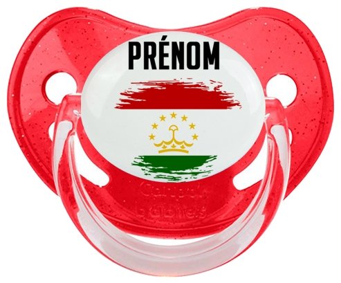 Sucette personnalisée pour bébé Drapeau effet pinceau Tadjikistan avec prénom à embout Physiologique en silicone de la marque Canpol Babies avec impression en en Couleurs de la Collection Pays / Équipes .La silicone se reconnaît par sa couleur transparente. C'est une matière souple, douce, sans goût ni odeur et offre à bébé une succion plus facile grâce à sa souplesse.