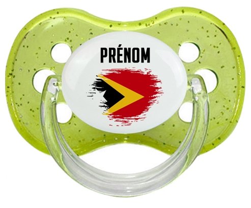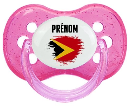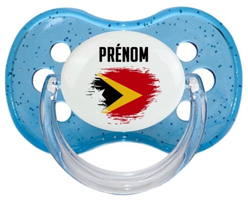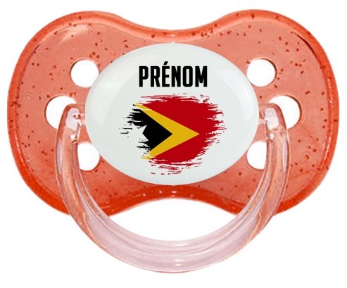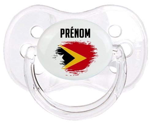 Sucette personnalisée Avec Prénom pour bébé Drapeau effet pinceau Timor Leste avec prénom en silicone de la marque Canpol Babies avec impression en couleur.