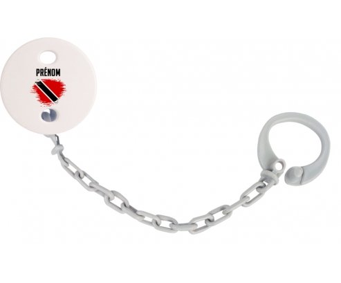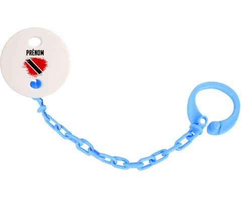 Attache-tetine personnalisé Drapeau effet pinceau Trinité-et-Tobago avec prénom avec personnalisation design en couleur. Disponible en plusieurs coloris et plastique facile à laver. Pratique : permet une fixation facile de la sucette de bébé à son doudou et à ses vêtements en un seul clip. Hygiénique : empêche la sucette de tomber par terre et permet ainsi à bébé d'avoir une sucette propre toute la journée Visible : facile à repérer grâce aux motifs colorés.