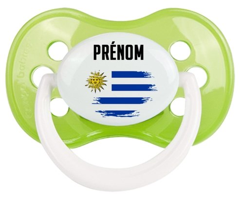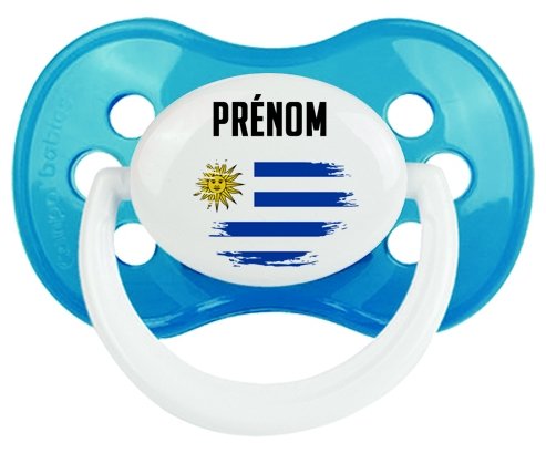 Pourquoi choisir : Drapeau effet pinceau Uruguay avec prénom : Sucette Anatomique