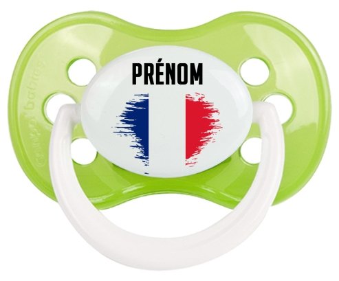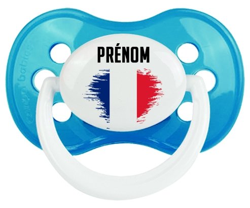 Sucette personnalisée pour bébé Drapeau effet pinceau Wallis et Futuna avec prénom à embout Anatomique en silicone de la marque Canpol Babies avec impression en en Couleurs de la Collection Pays / Équipes .La silicone se reconnaît par sa couleur transparente. C'est une matière souple, douce, sans goût ni odeur et offre à bébé une succion plus facile grâce à sa souplesse.
